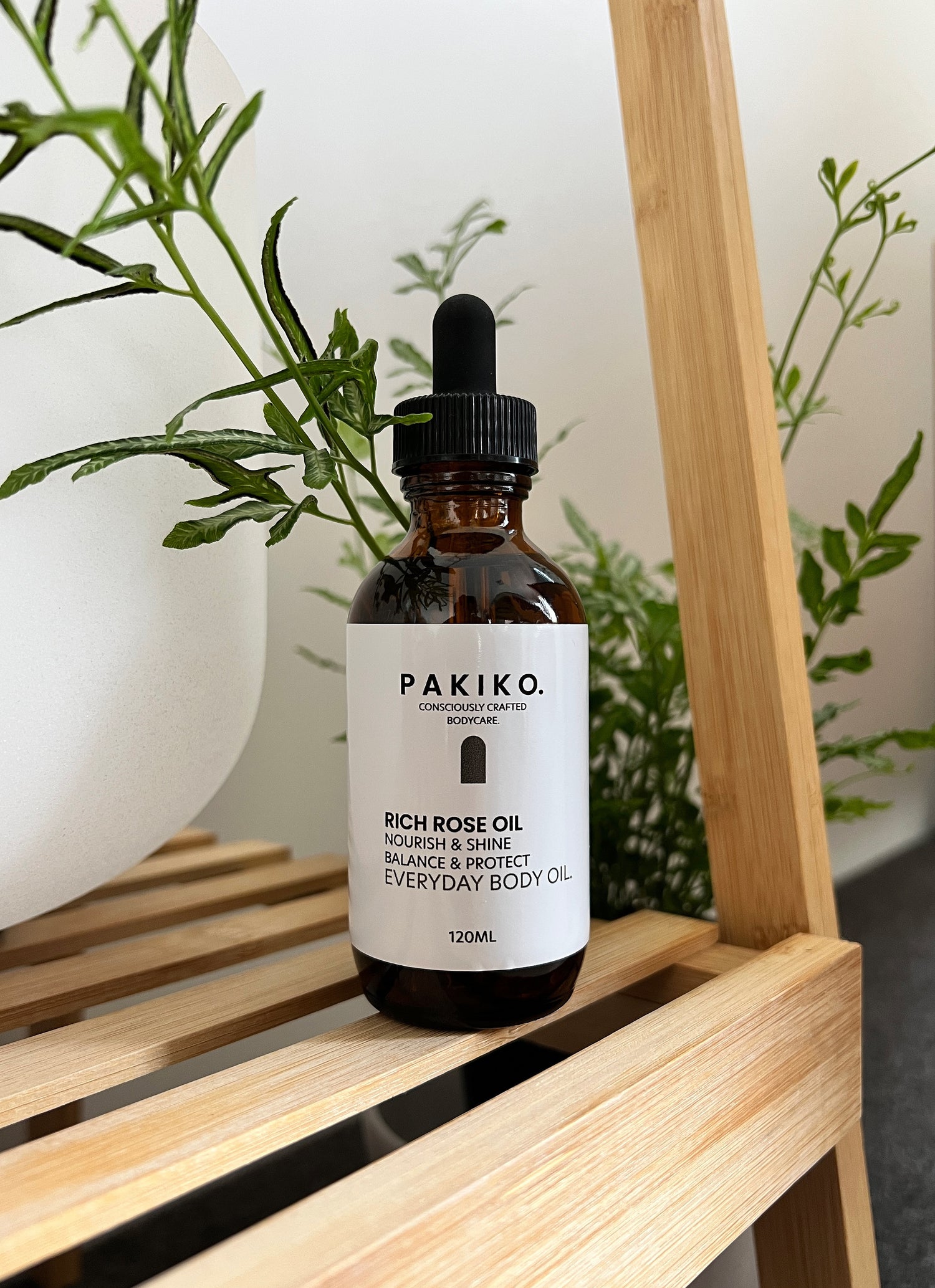 Rich Rose Body Oil has anti-bacterial, anti-microbial & anti-inflammatory properties. Infused with natural botanicals that increase the quality of the oil as it ages.
